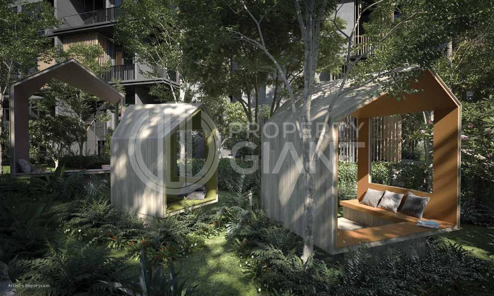 The development comprises 10 blocks of residential flats—7 blocks of 5-storeys and 3 blocks of 3-storeys. In total, 276 lavish units inhabit the 201,877 sq ft land area and 249,638 sq ft floor area, ranging from 1-bedroom to 5-bedroom layouts. Parc Komo offers resort-style living with excellent condominium facilities such as a 50m lap pool, kids’ pool, poolside cabanas, yoga deck, gymnasium, bbq pavilion, grotto and fitness park. Residents will find a sense of peace and tranquillity wandering the development’s sub-tropical gardens away from the hustle and bustle of the city.